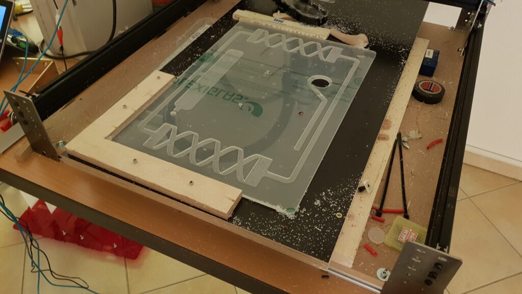 Das GRBL-Board lief stabil, nachdem ich die Stepper-Kabel sauber geerdet habe. Zuvor haben des öfteren die Endanschläge fälschlich angeschlagen.